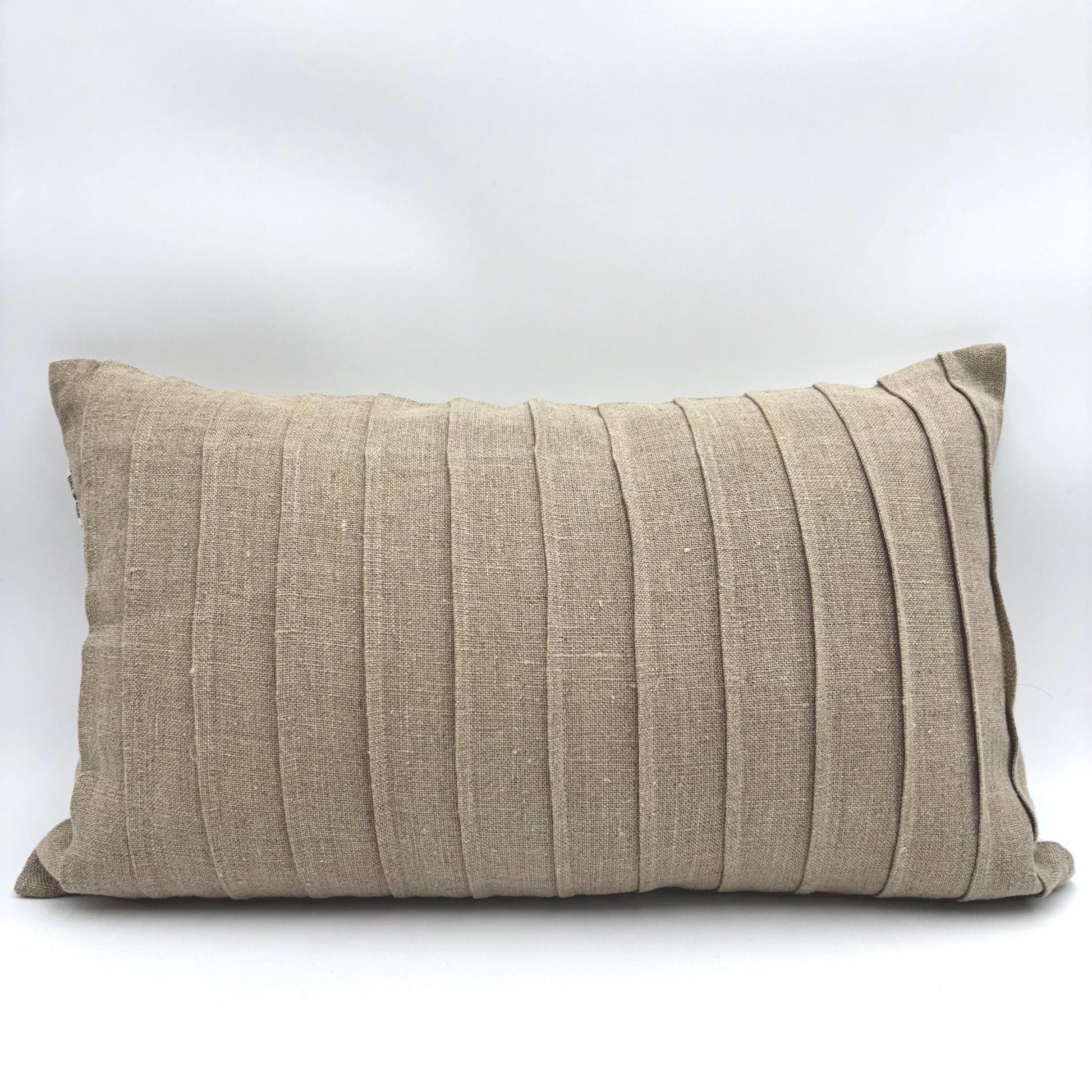 Our "Brooklyn" pillow cover features a vertical pleated pattern on the front. The pleats are stitched by hand on thick heavyweight linen fabric. The pleats create a natural textured look to the pillow cover. This extremely versatile pillow cover pairs well with beiges and whites.