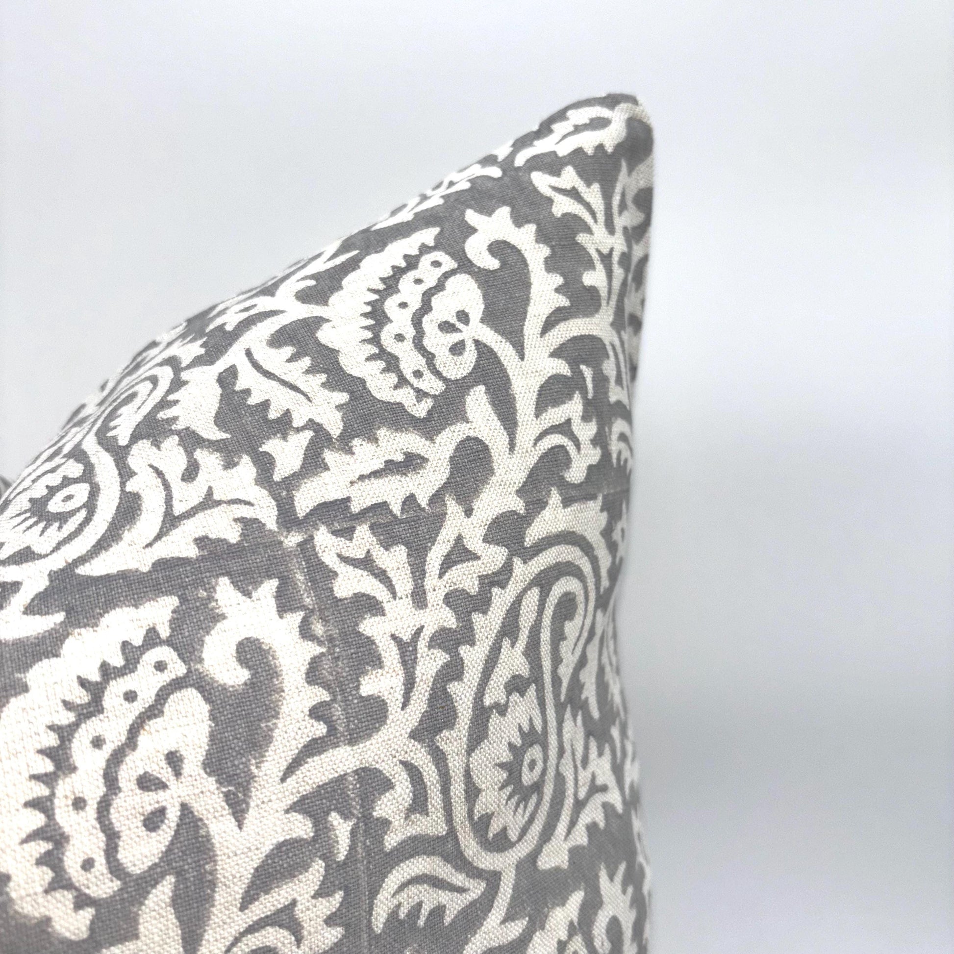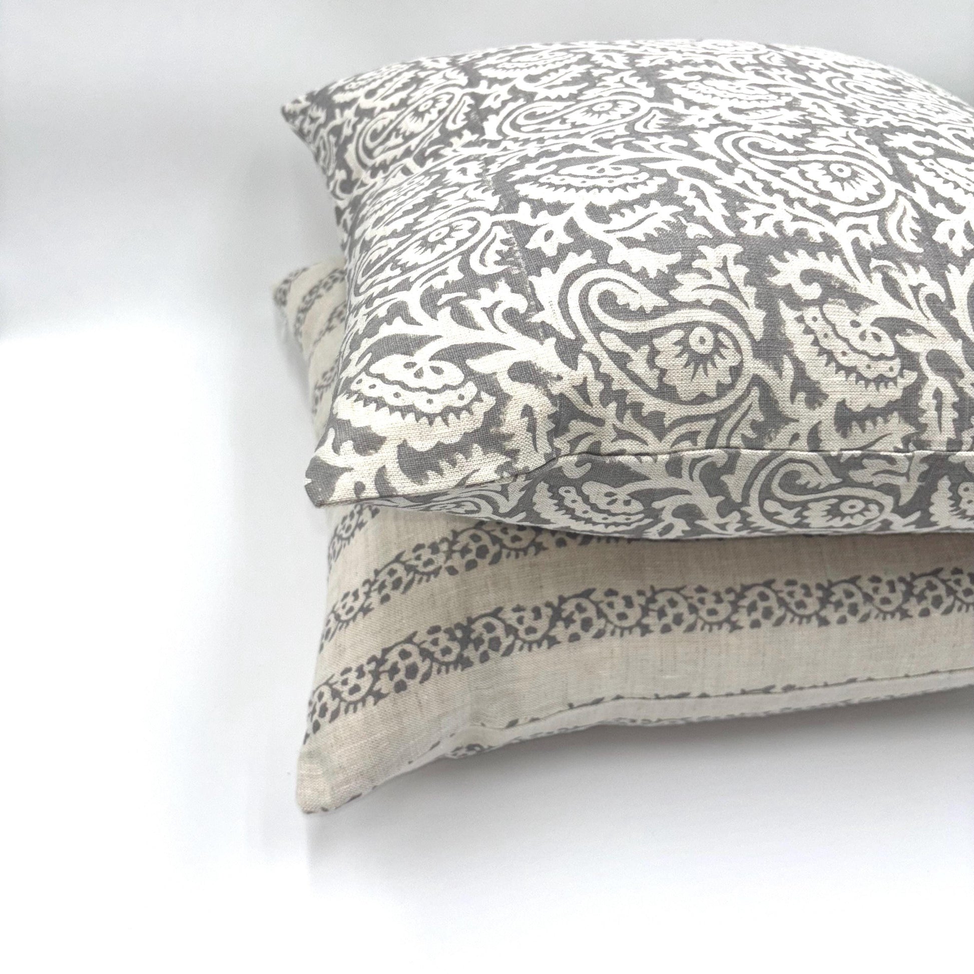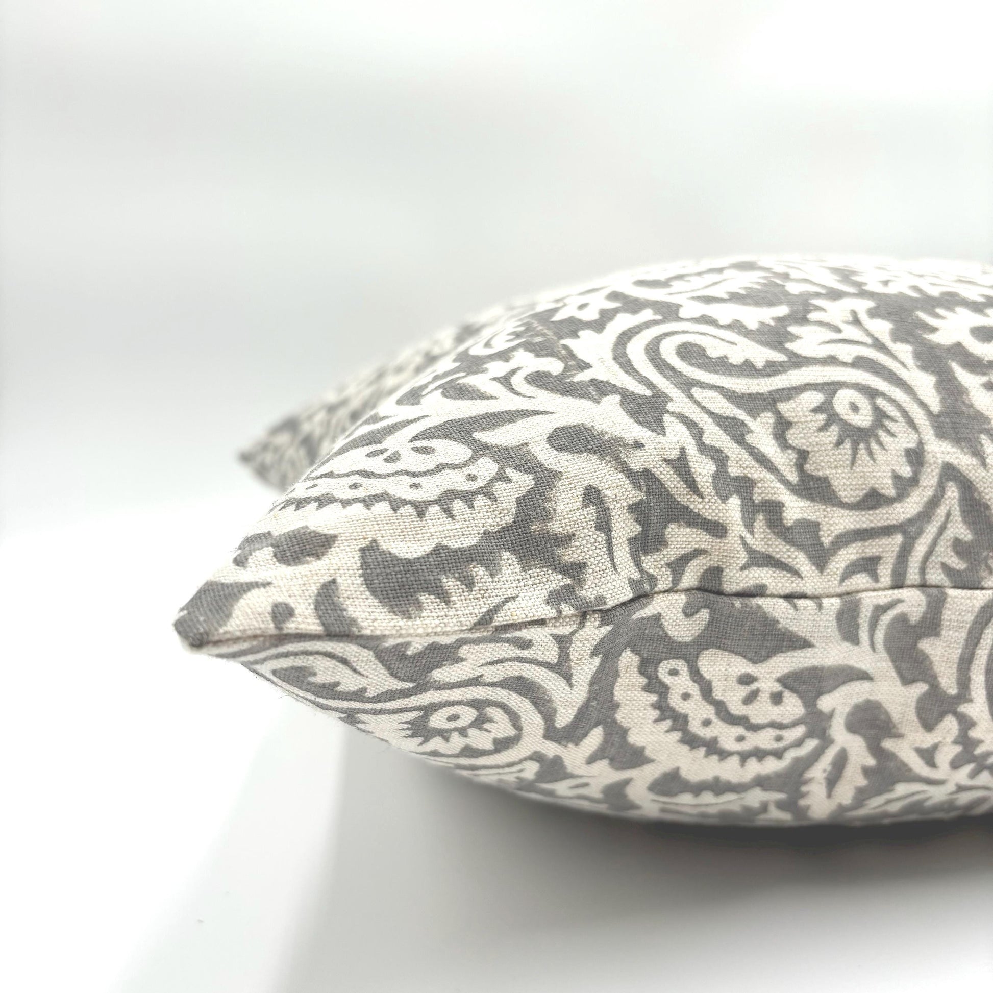 Hannah - hand block printed linen pillow cover (gray)