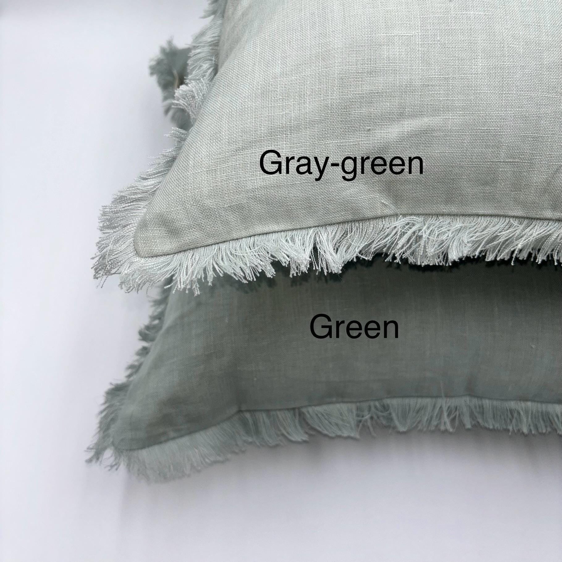 This pillow is available in 4 different colors - White, gray-green, green and french blue