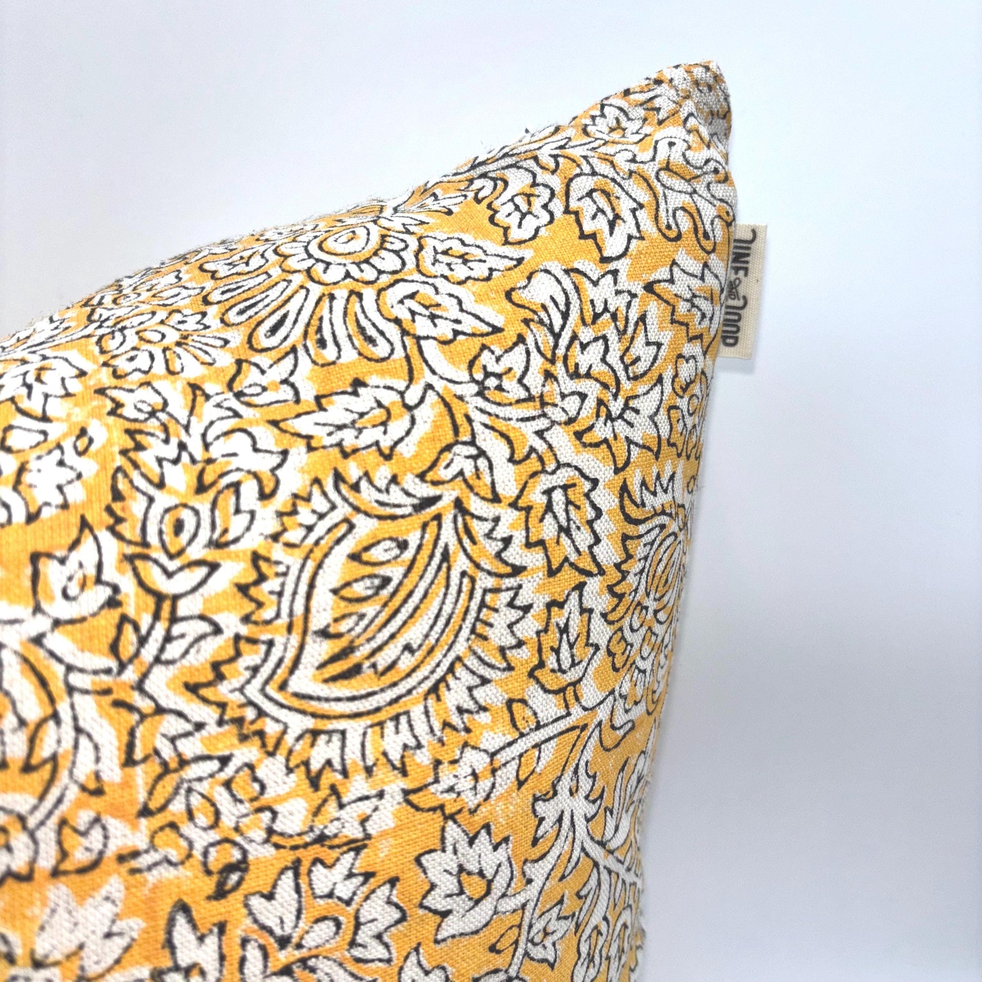 Amira - hand block printed linen pillow cover (yellow)