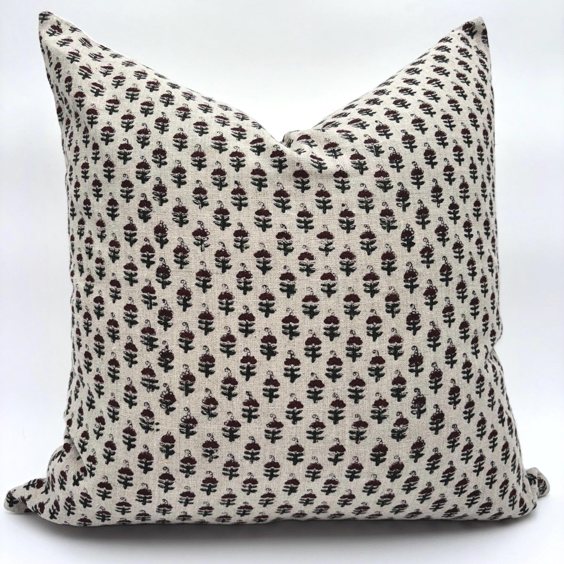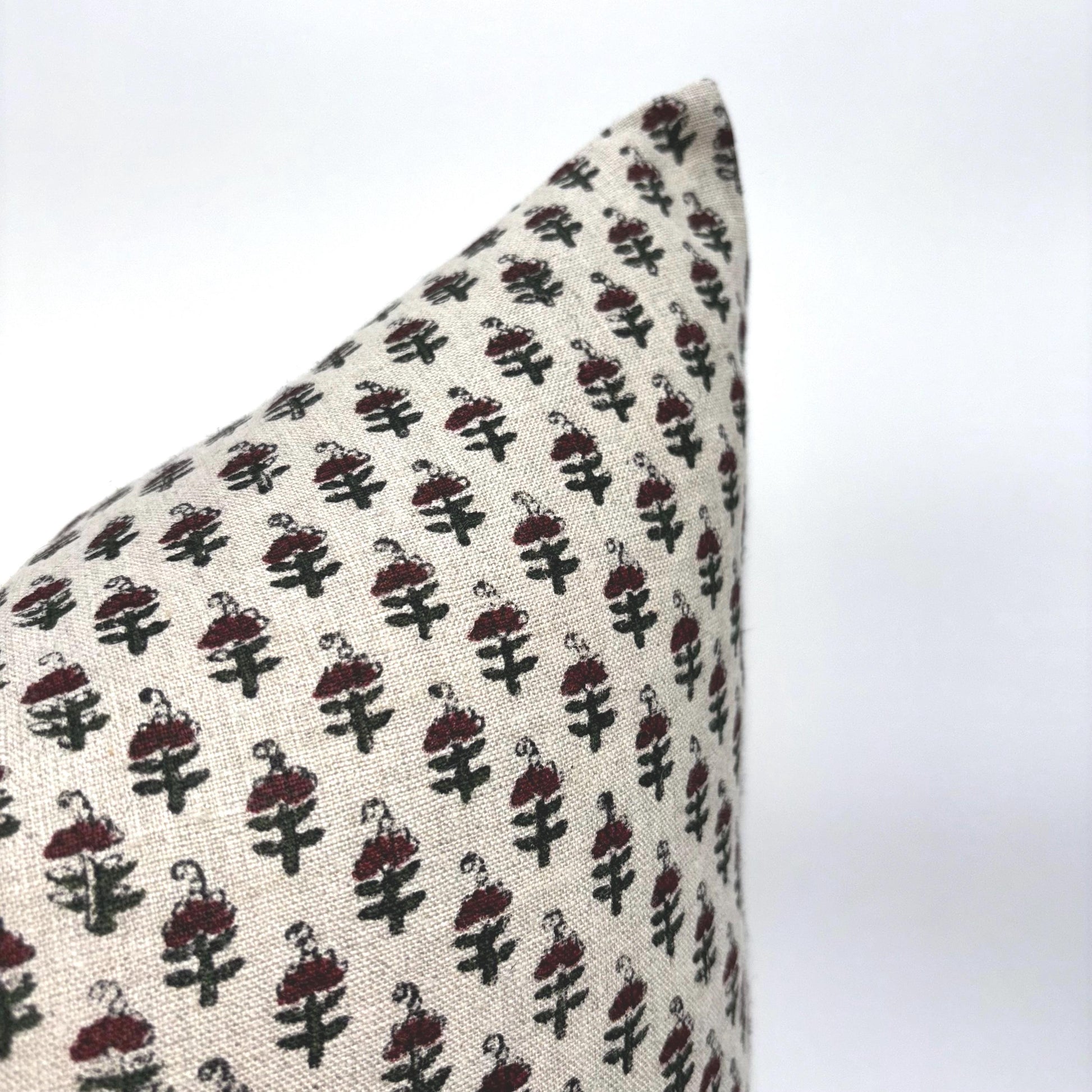 Amelia - hand block printed linen pillow cover (maroon)